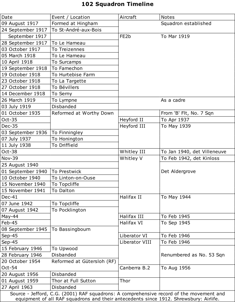 Welcome Pocklington Area and the Airfield Memorials People Aircraft & Crews Operations Places 102 Squadron Bases